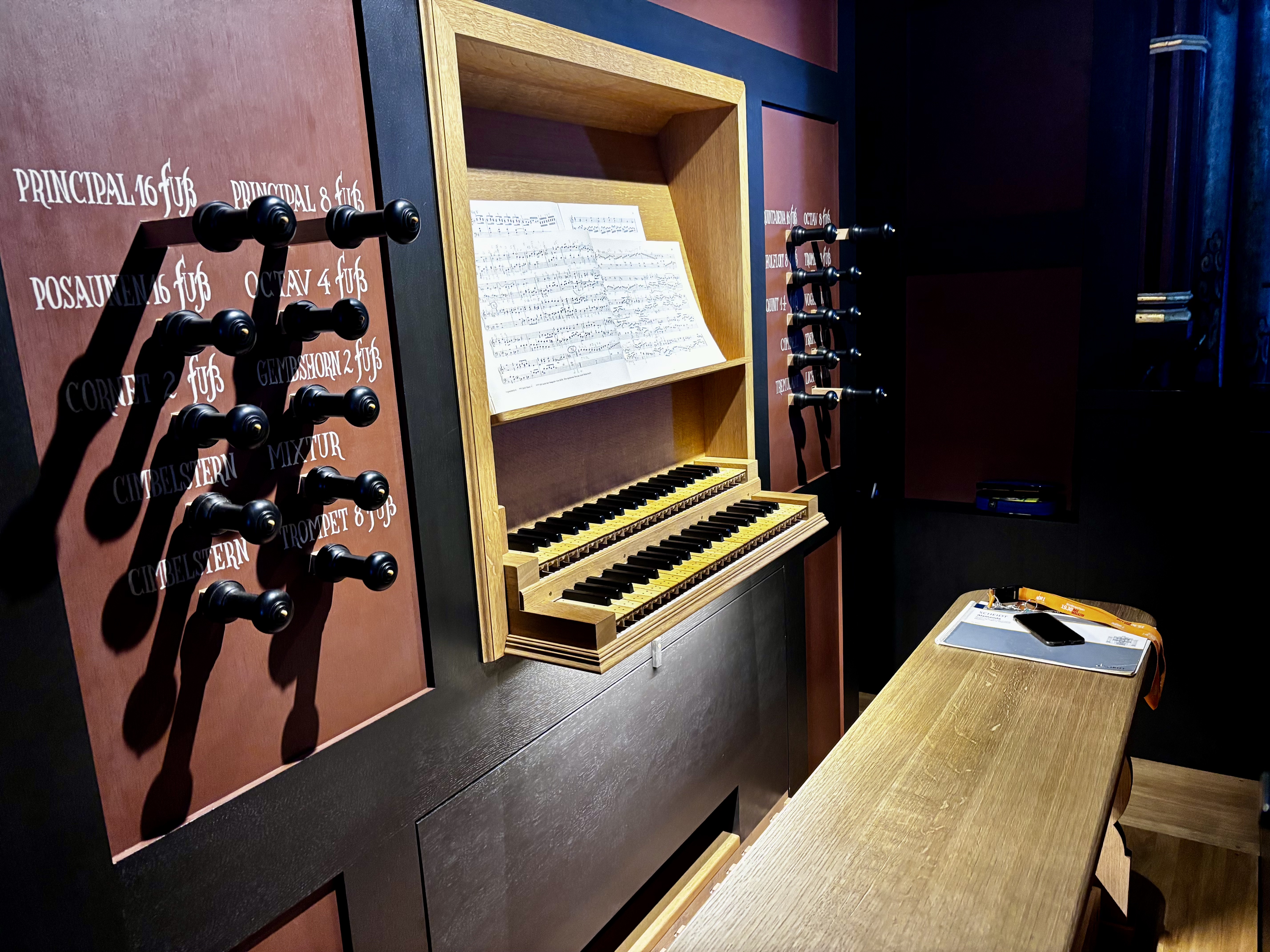 Ich bin ziemlich begeistert. Prinzipale, die in diesem Raum seit 430 Jahren klingen. Charakteristische Stimmen, die Rauh- und Mildheit so fantastisch in sich vereinen, dass es kein Widerspruch ist. Buxtehudes d-Moll-Präludium BuxWV140, das meine StudentInnen zur Genüge kennen, mag das verdeutlichen.