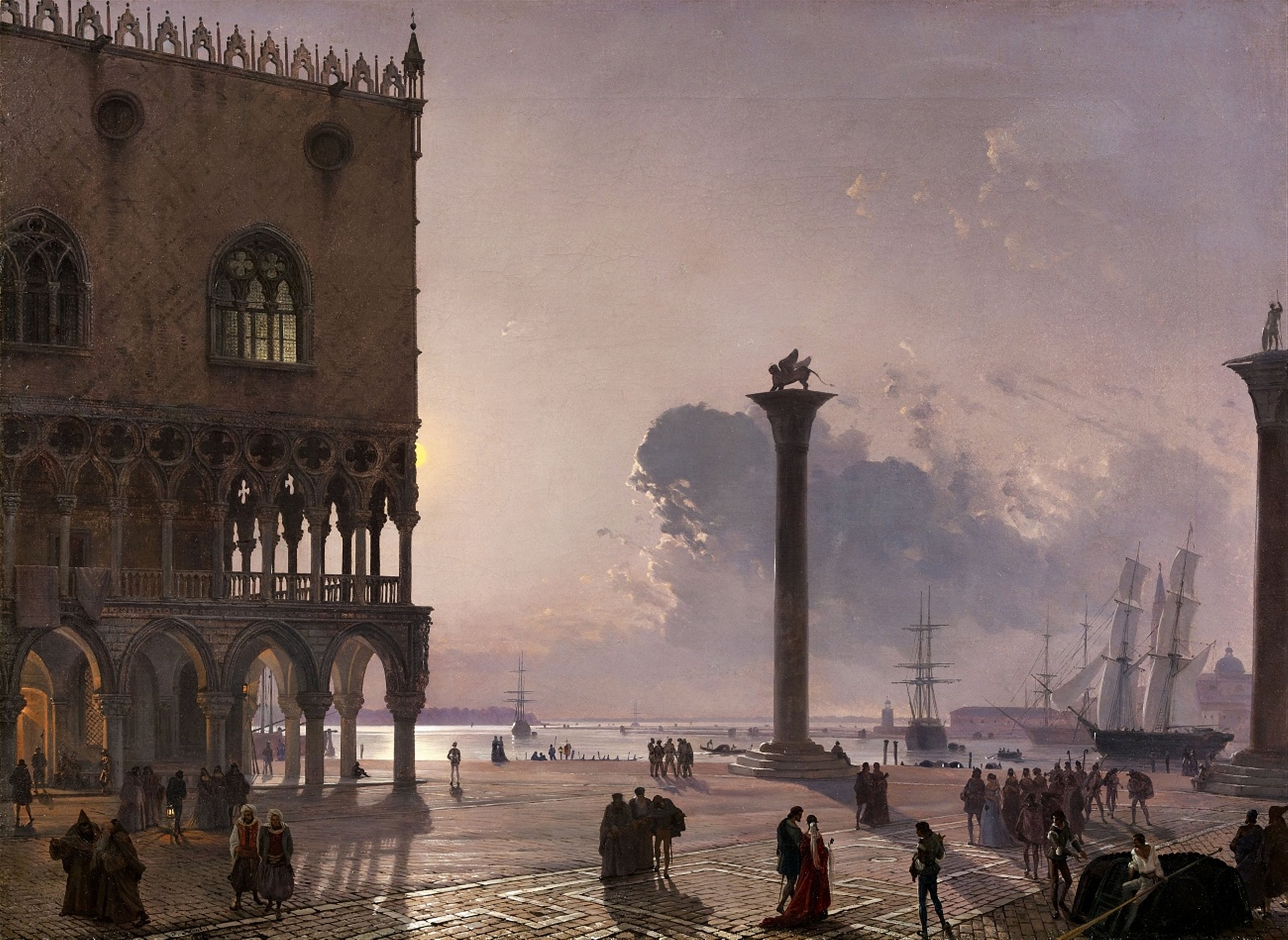 1 Zeitgleich läuft dort auch die Begleitausstellung „Nerly in Venedig“, und anders als heimlich erhofft, konnte ich dort kein Originalexemplar der Piazzetta im Mondenschein betrachten, die mich im Wallraf-Richartz-Museum fasziniert hatte.