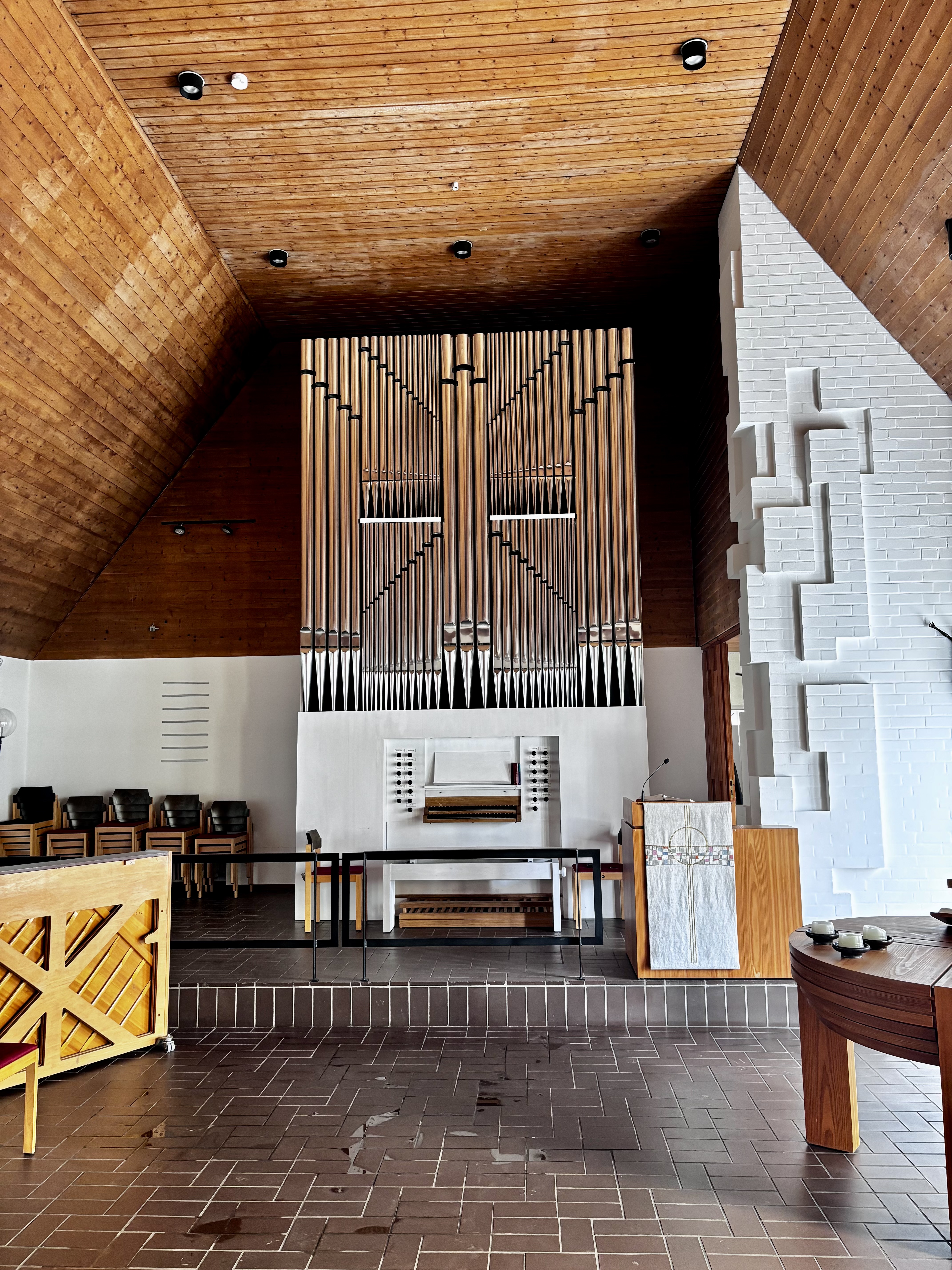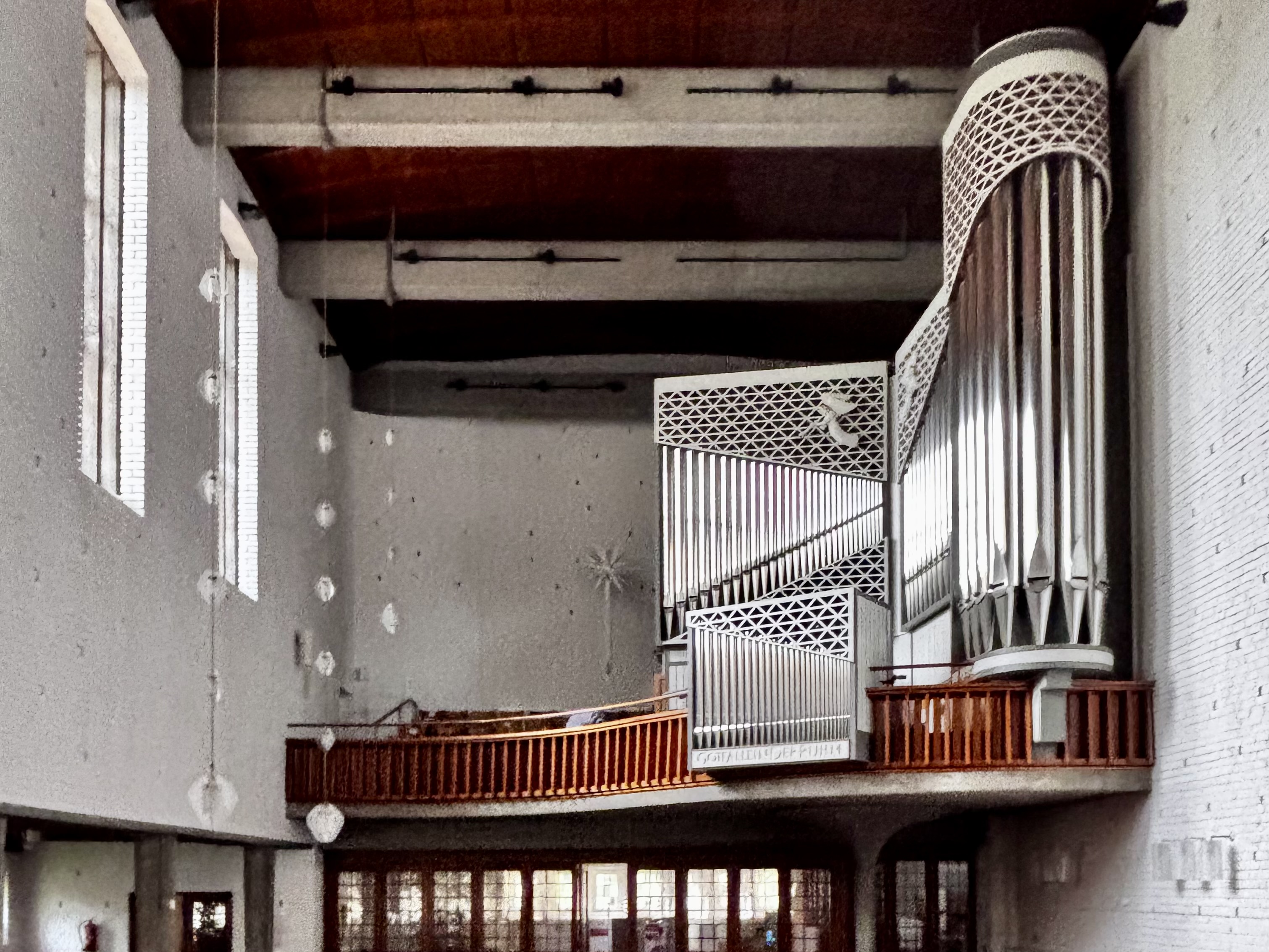 Das Instrument der Auferstehungskirche in Großhansdorf (III+P, 33 Register) schließlich stammt von dem in Barcelona tätigen Orgelbauer Gerhard Grenzing. Dem architektonisch aufmerksamen Blick des Besuchers erschließt sich unmittelbar, warum das Gehäuse von 1965 als Teil des Gesamtensembles denkmalgeschützt ist und Grenzing 2015 seine Orgel in das bestehende Gehäuse mit seinem asymmetrischen Werkaufbau hineinkonzipieren musste. Dies tut der Qualität dieser Orgel keinen Abbruch. „Was für eine Traktur!“, dachte ich beim Spiel, und die ganze Orgel überzeugt mich sehr. Ich frage mich allerdings, ob – bei einer derart soliden handwerklichen Bauweise – die elektrischen/elektronischen Komponenten wirklich in dieser Form notwendig sind. Eine vollmechanische Bauweise, beispielsweise ohne elektrisch traktierte Oktav- oder frei programmierbare Intervallkoppeln, fände ich auch bei dieser Größe ästhetisch schlüssiger.